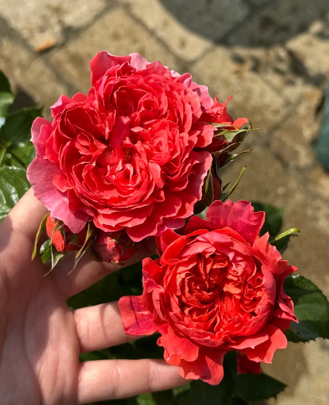 2. Flower Characteristics: Dark red flowers, 6-8 cm in diameter, rounded shape, varied flower shape, with a light fragrance.