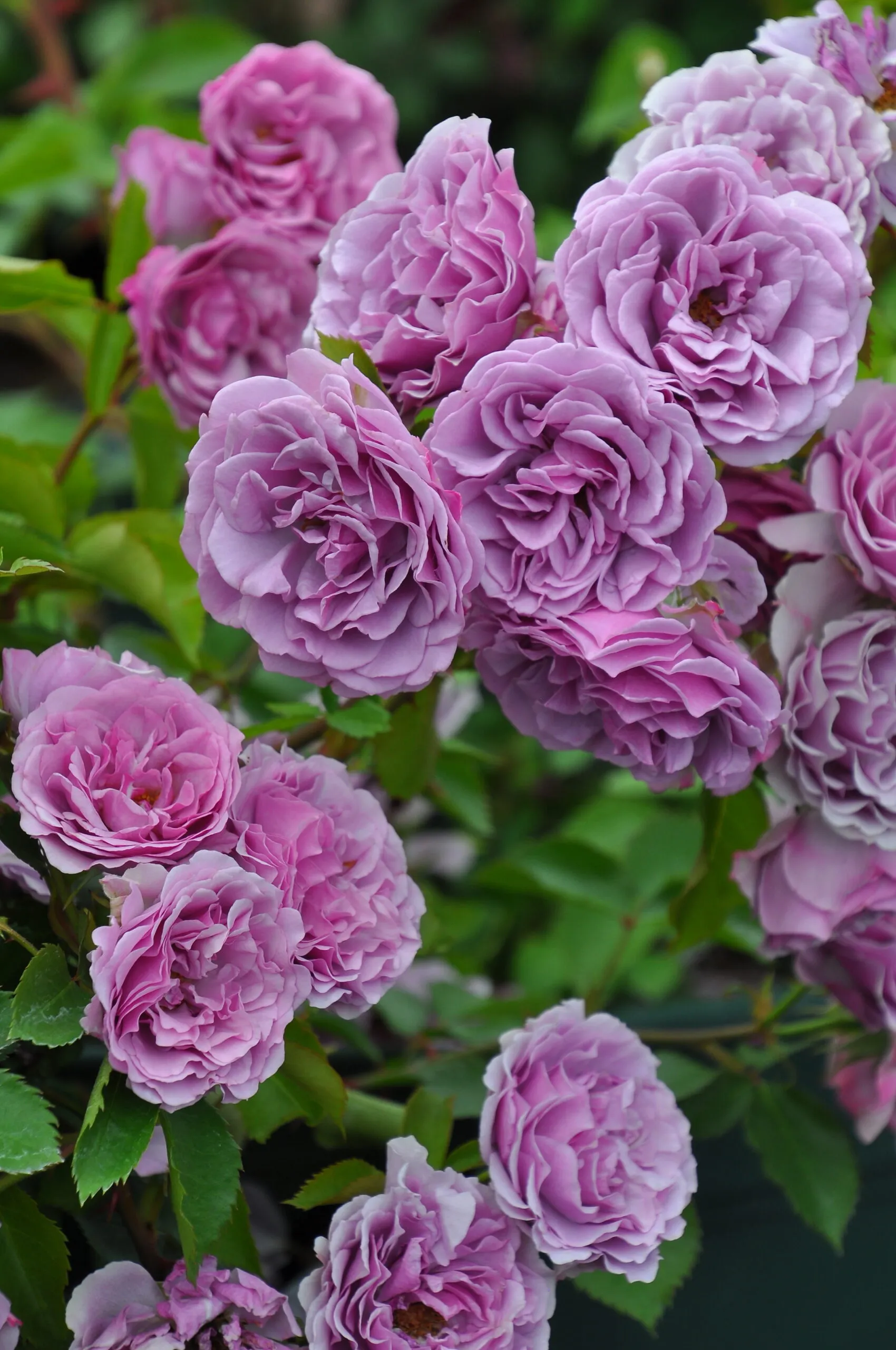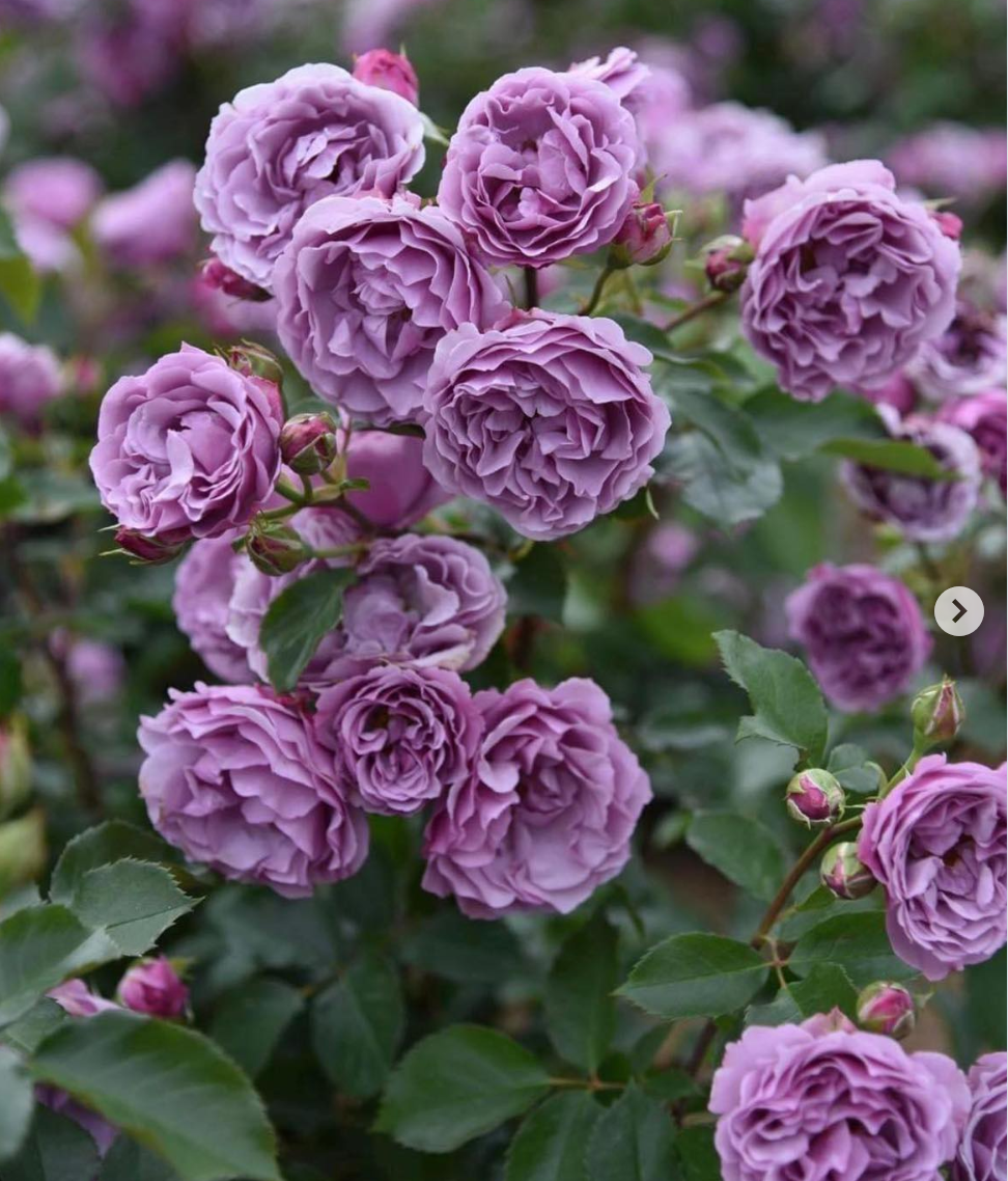 【Flowers】 Small to medium-sized flowers with wavy petals, tinged with reddish purplish-red, bloom in clusters with multiple flowers per stem. A light fragrance with a tea base. Cute and sweet, yet seemingly possessing a mysterious side. The color is light purple during hot weather. It produces a large number of flowers, with a very long blooming period and high continuous flowering ability, sometimes making one wonder when this rose will stop blooming. The flower color remains stable after blooming, hardly changing. Also suitable for cut flowers.