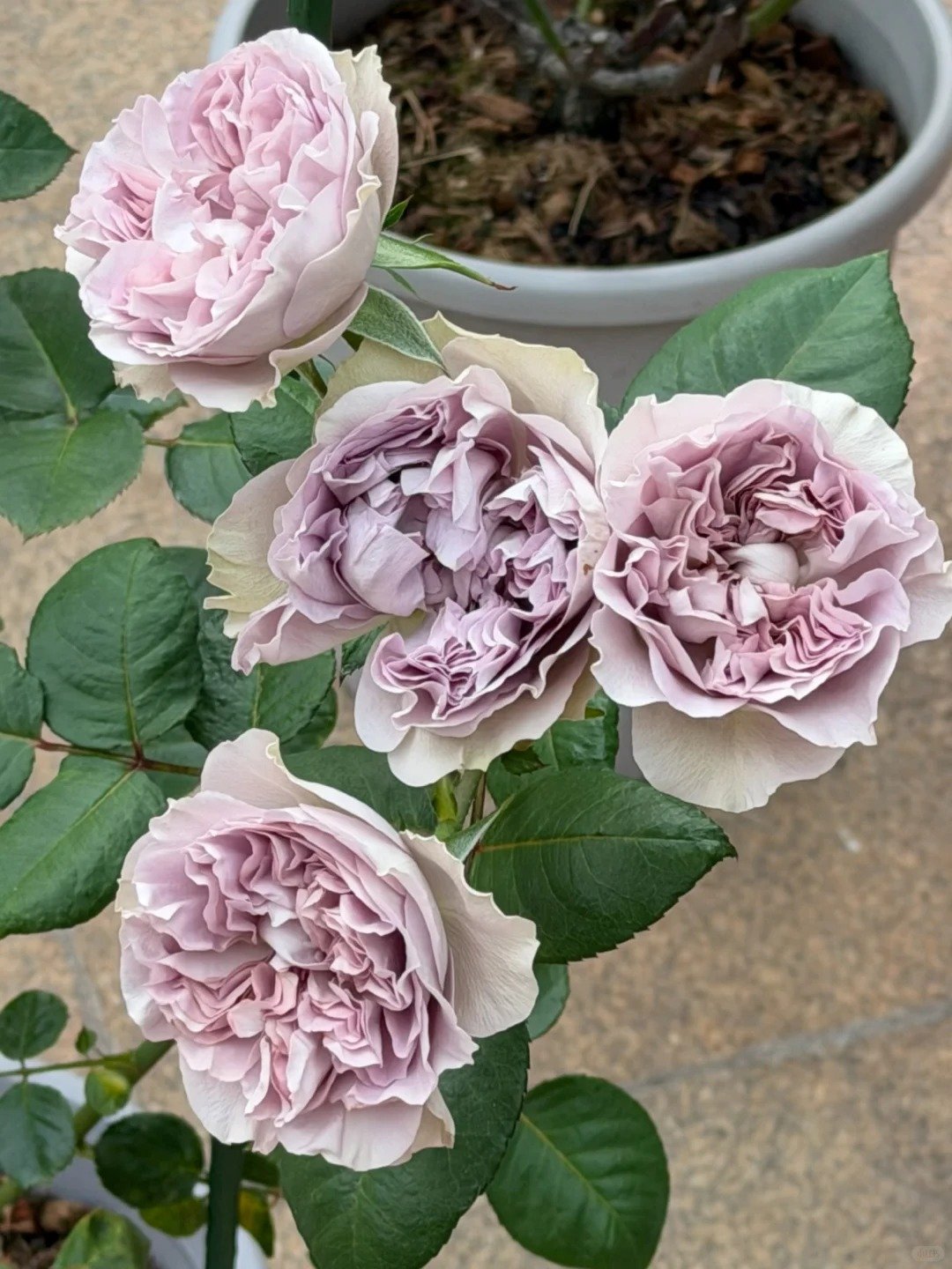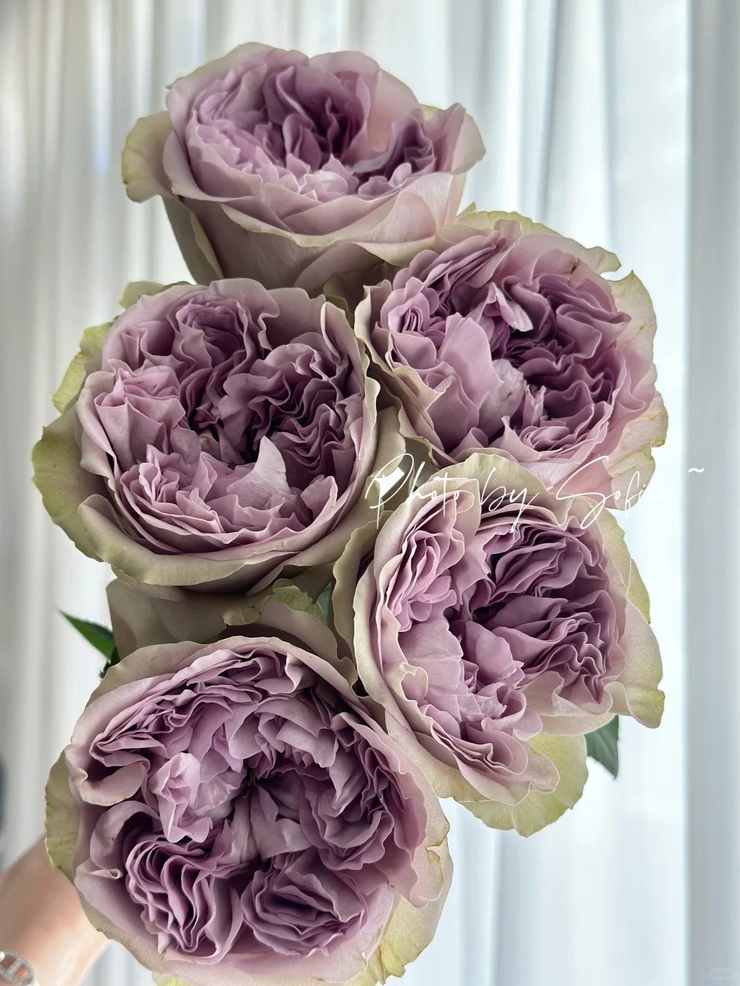 Color: Pinkish-purple blooms with outer petals subtly brushed with green.