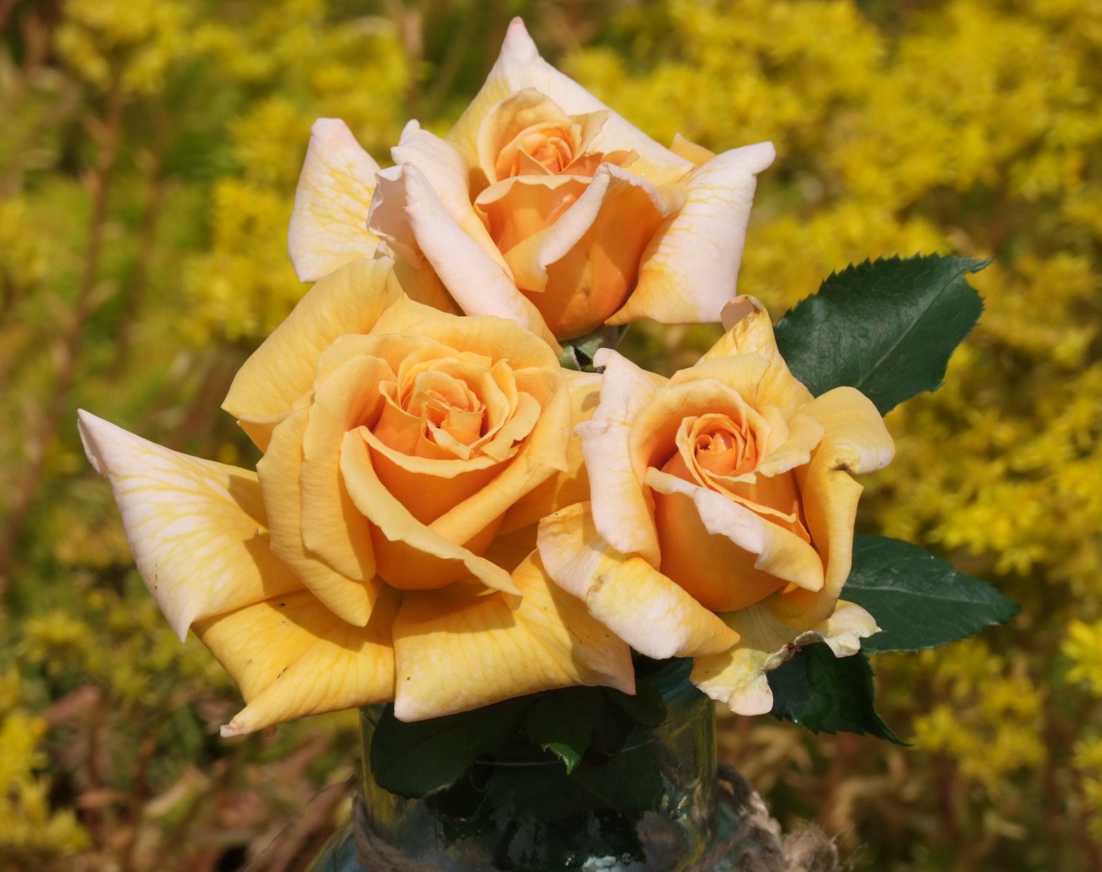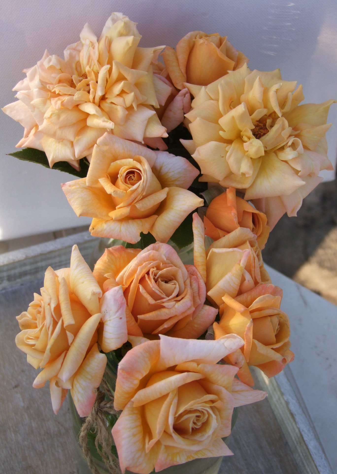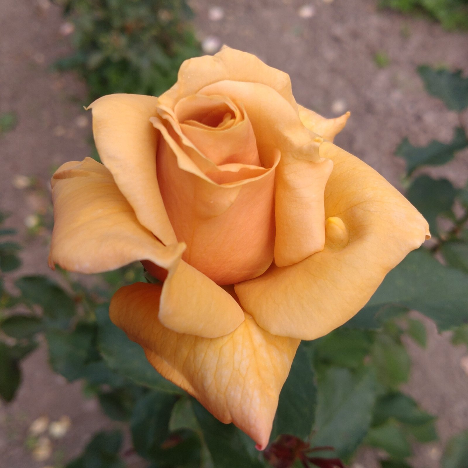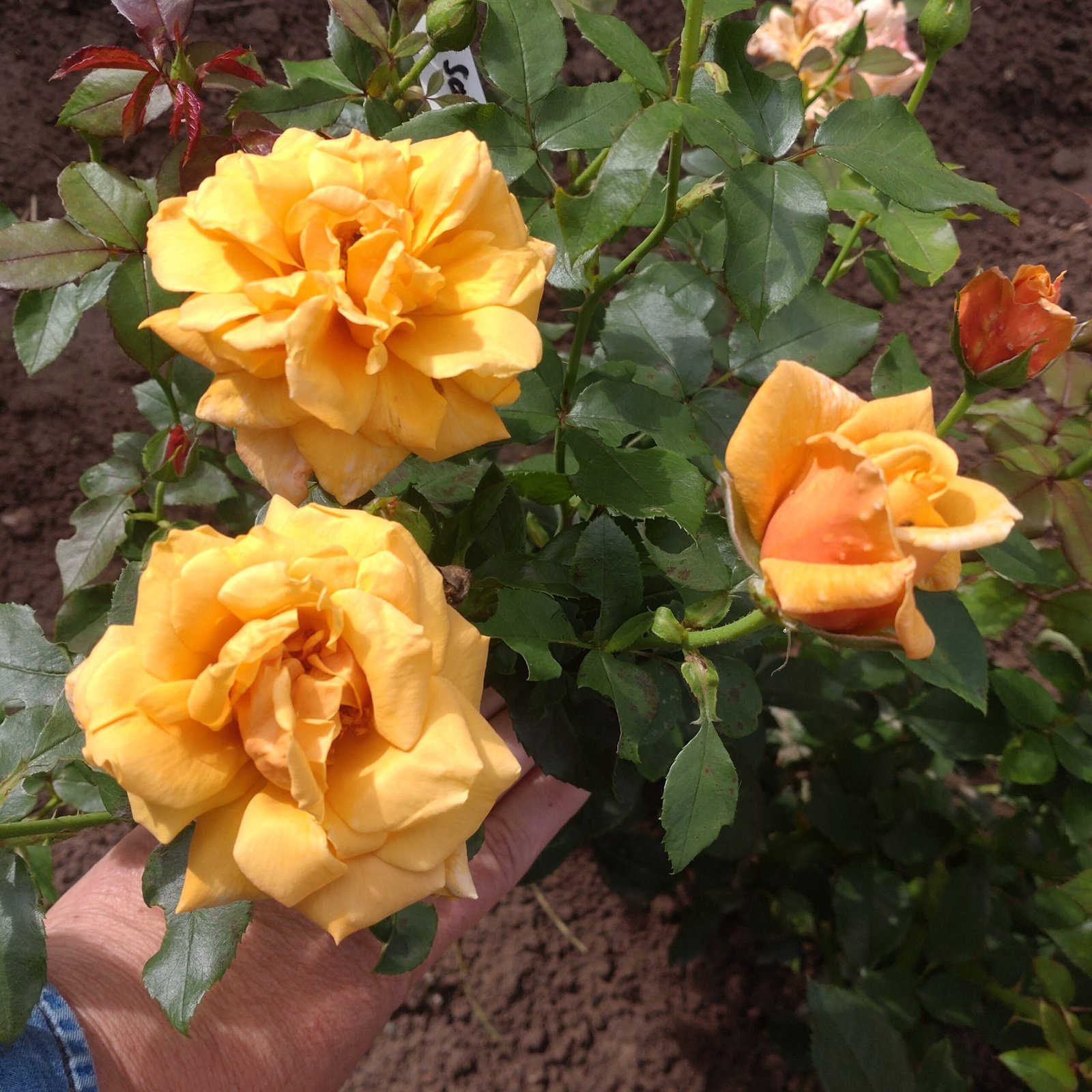 ყვითელი, ნარინჯისფერი ელფერით,ასევე ატმისფერი ელფერები, კრემისფერი კიდეებით, ატმისფერამდე გარდამავალი ფერი დახანებისას. ძლიერი არომატი. ორმაგად ჩახვეული ყვავილები(17-25 ფურცელი), მაღალი ცენტრიდან ბრტყელ ყვავილამდე. ყვავის ტალღებად მთელი სეზონის მანძილზე.